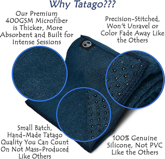 Tatago Hot Yoga Towel Non Slip Grip in 2 Sizes. Premium Yoga Towels for Hot Yoga Non Slip, Hot Pilates Mat Towel or Yoga Mat Towel Thicker, Softer, More Absorbant & Durable!