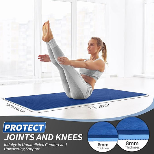 Yoga Mat 8mm Super Thick TPE Fitness Mat | SGS Certified | Non-Slip, Odorless & Tear-Resistant | Unisex with Strap | for Yoga, Pilates, Meditation & Home Workouts