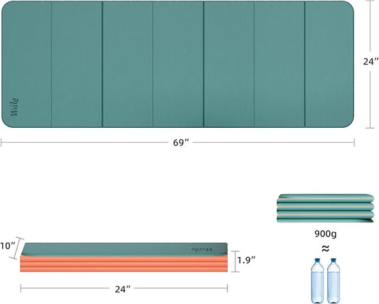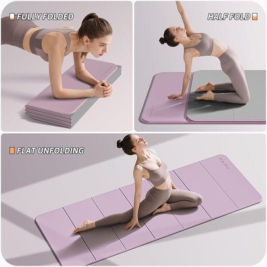 Foldable Fitness Yoga Mat | 2/5" (10MM) Extra Thick | SGS Certified Non-Slip TPE | 75x26" Extra Long-Wide | Portable & Easy Store | for Yoga, Pilates, Home Gym & Full-Body Workouts