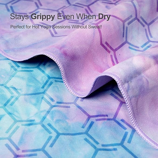 Eunzel Yoga Towel for Hot Yoga,Non-Slip Double Sided Silicone Grip Towel Absorbent Microfiber Towel for Hot Yoga, Vinyasa and Power 26.5"x72", Purple & Blue