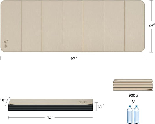 Foldable Fitness Yoga Mat | 2/5" (10MM) Extra Thick | SGS Certified Non-Slip TPE | 75x26" Extra Long-Wide | Portable & Easy Store | for Yoga, Pilates, Home Gym & Full-Body Workouts