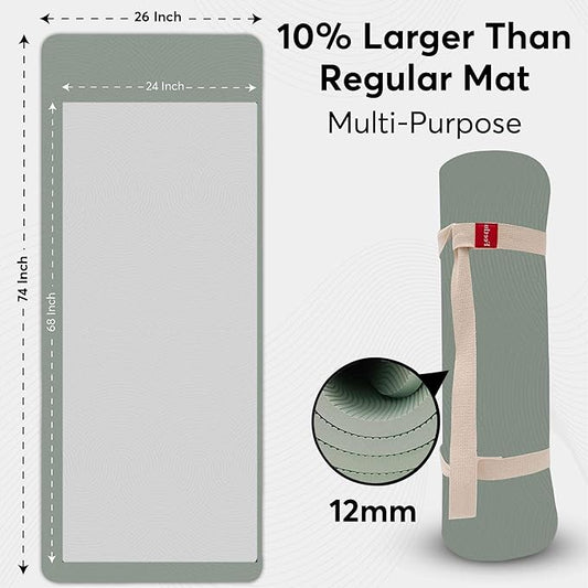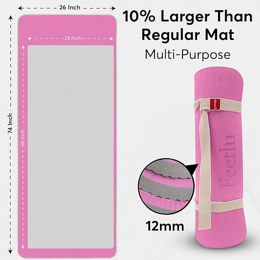 Extra Thick 12mm Exercise Mat – Non-Slip, Joint-Friendly & Cushioned Fitness Mat for Yoga, Pilates & Floor Workouts – Durable, Supportive & Includes Feetlu Classic Strap