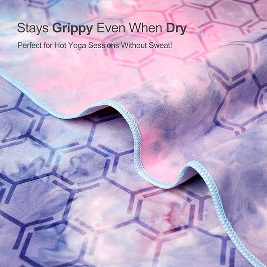 Eunzel Yoga Towel for Hot Yoga,Non-Slip Double Sided Silicone Grip Towel Absorbent Microfiber Towel for Hot Yoga, Vinyasa and Power 26.5"x72", Navy & Pink