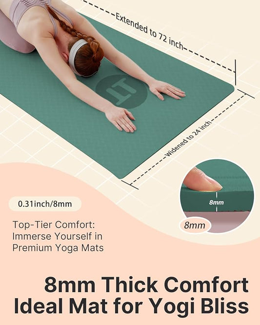 YOTTOY Yoga Mat, 72"x 32"x1/3" Extra Wide Non-Slip Exercise Fitness Yoga Mats,Eco-Friendly TPE Exercise Mats for Women Men Home Workout with Strap Bag
