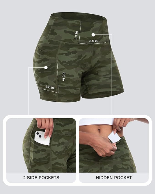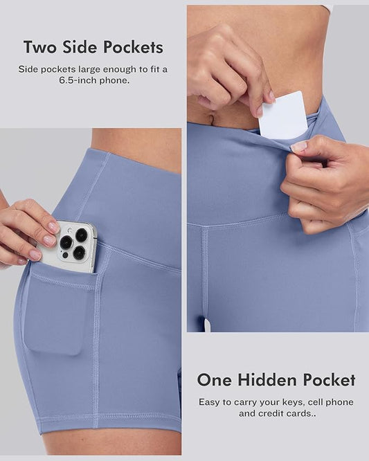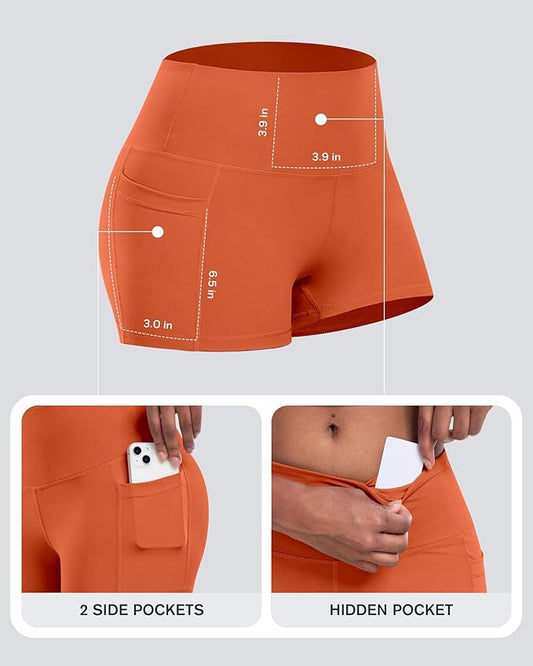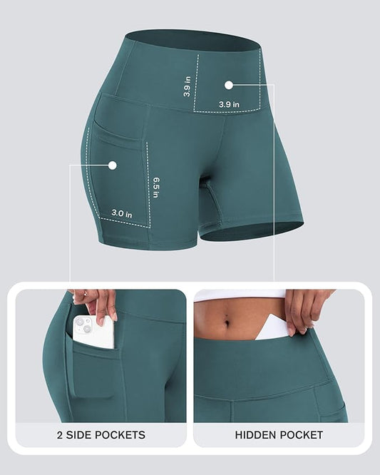 CHRLEISURE Womens Biker Yoga Shorts with Pockets: High Waisted Tummy Control Spandex Workout Athletic Gym Shorts 4 Packs