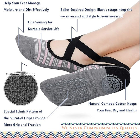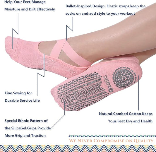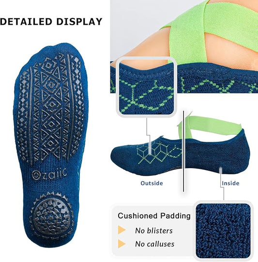 Ozaiic Yoga Socks for Women Non-Slip Grips & Straps, Ideal for Pilates, Pure Barre, Ballet, Dance, Barefoot Workout