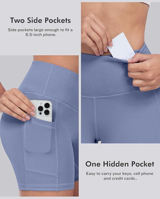 LZYVOO Biker Spandex Shorts Women, High Waisted Tummy Control Workout Yoga Shorts with Pockets