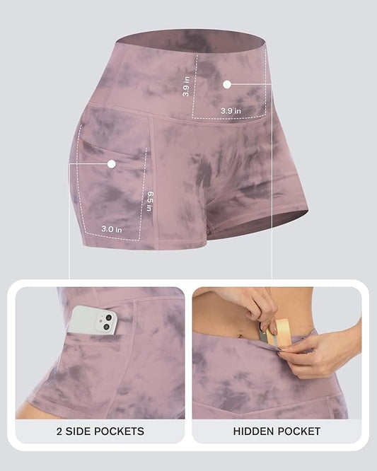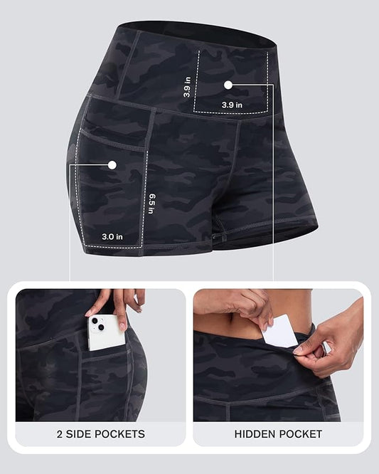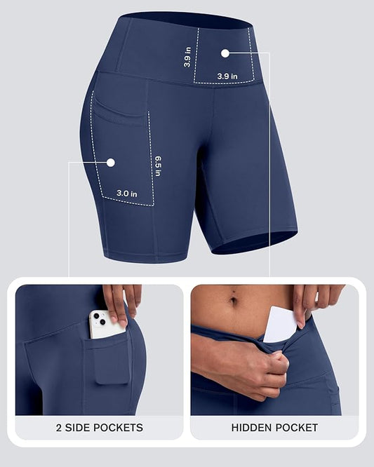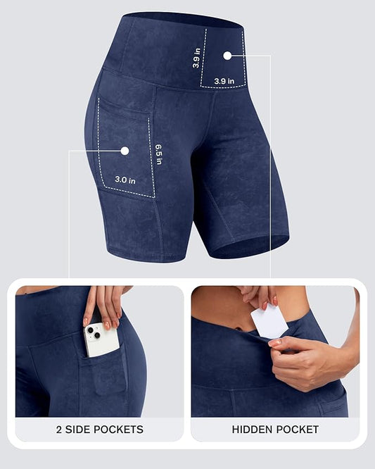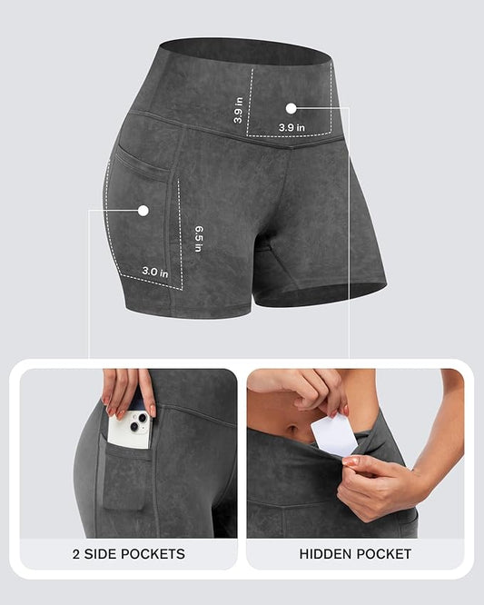 CHRLEISURE Womens Biker Yoga Shorts with Pockets: High Waisted Tummy Control Spandex Workout Athletic Gym Shorts 4 Packs