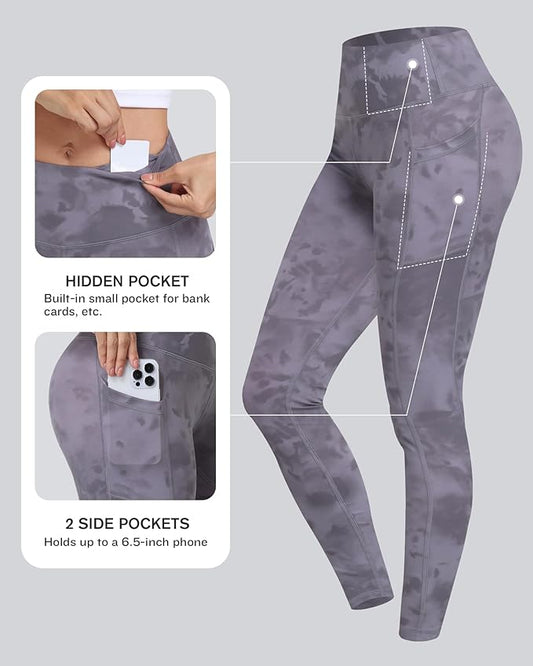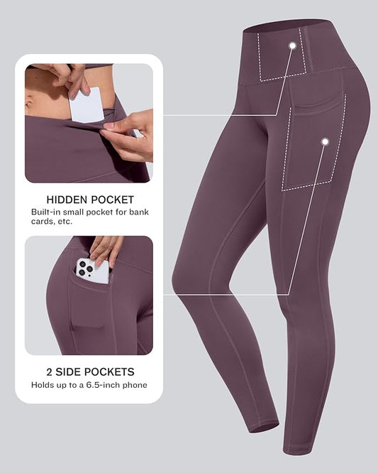 CHRLEISURE Leggings with Pockets for Women, High Waisted Tummy Control Workout Yoga Pants