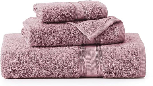 LANE LINEN Luxury Bath Towels Set - 3 Piece Set, 100% Cotton Bathroom Towels, Zero Twist, Quick Shower Towels, Absorbent Bath Towel, Soft, 1 Bath Towel, 1 Hand Towel, 1 Wash Cloths - Wishful Mauve