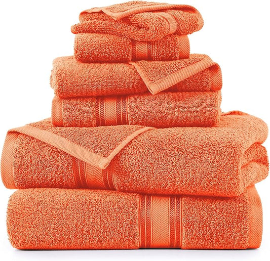 LANE LINEN Luxury Bath Towels Set - 6 Piece, 100% Cotton, Quick Dry, Super Soft & Absorbent, Zero Twist (2 Bath Towels, 2 Hand Towels, 2 Washcloths) - Rust