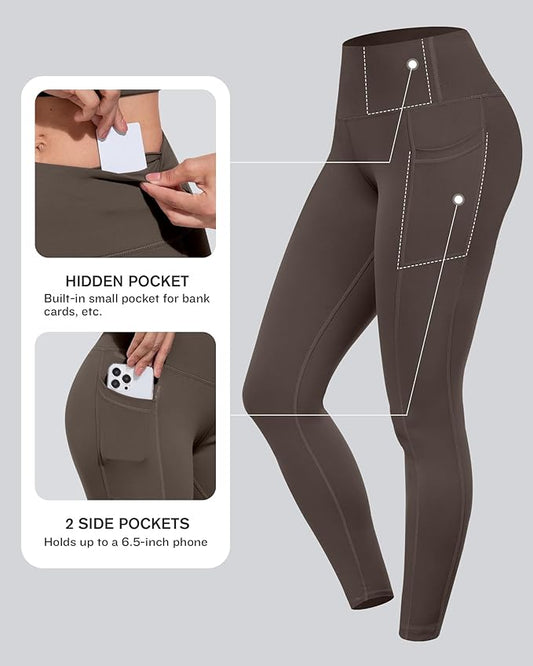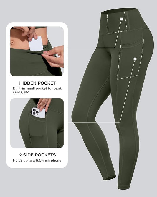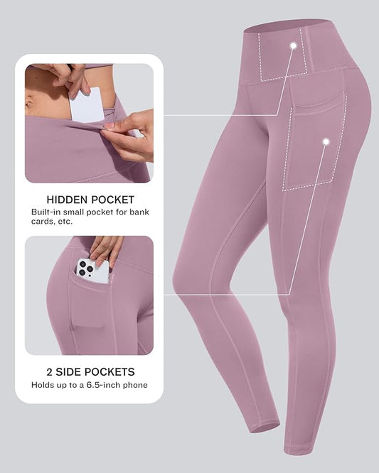 CHRLEISURE Leggings with Pockets for Women, High Waisted Tummy Control Workout Yoga Pants
