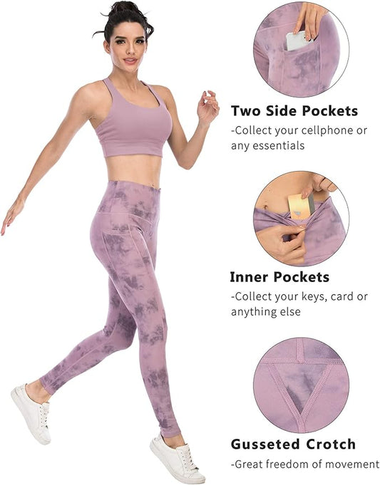 CHRLEISURE Leggings with Pockets for Women, High Waisted Tummy Control Workout Yoga Pants