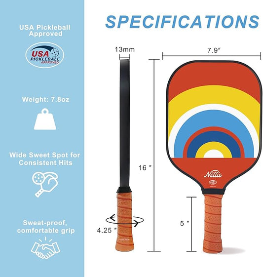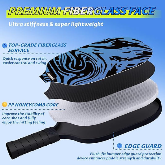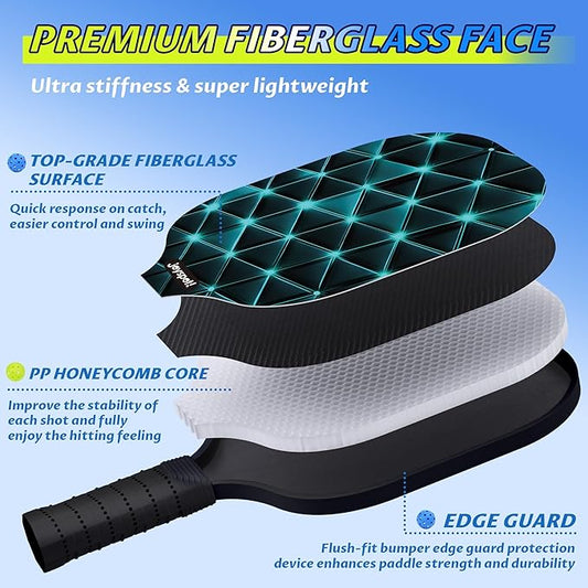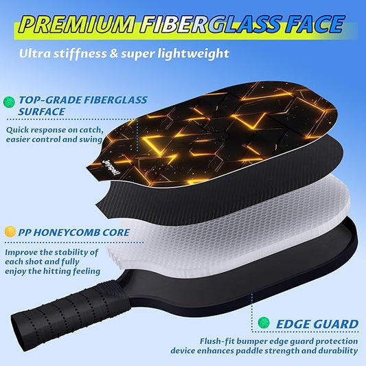 Pickleball Paddles Set of 2 with 4 Balls - USAPA Approved Fiberglass Surface, Lightweight, Non-Slip Grip - Premium Paddle Set for All Skill Levels Indoor & Outdoor