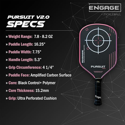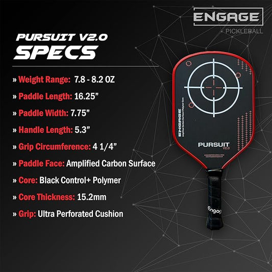 Engage Pursuit V2.0 Pickleball Paddle - Amplified Carbon Surface for Superior Control & Spin with Response+ Polymer Core, USAPA Approved - Designed for Players of Any Skill Level