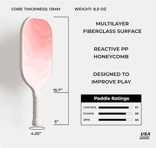 CIRCE Cielo Pickleball Paddle - Blush | G2 Reinforced Fiberglass Surface with 13mm Reactive Honeycomb Core | 8oz, Beginner Paddle for Consistency & Control | Ergonomic Handle | USAP Approved