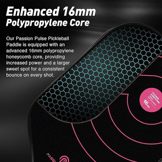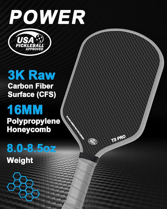 Pickleball Paddle - 3K Raw Carbon Fiber Surface (CFS) + Carbon Abrasion Surface (CAS) with High Grit & Spin, Sure-Grip Elongated Handle, Pickle Ball Paddle with 16mm Polypropylene Honeycomb Core