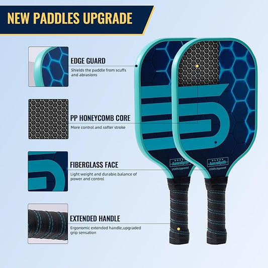 Graphite Pickleball Paddles Set- Premium Rackets Fiber Face & Polymer Honeycomb Core Pickleball Set Includes Pickleball Paddles + Pickleball Balls+ Replacement Soft Grip + 1 Bag