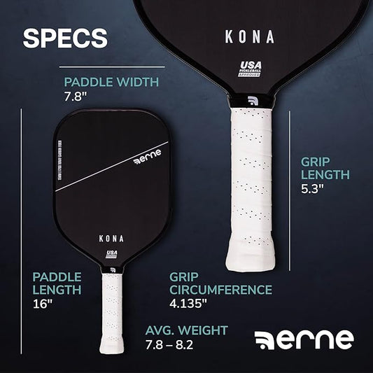 Kona Carbon Pickleball Paddle – 16" Lightweight Design, Carbon Fiber Surface for Spin & Control, 15mm Polymer Core, USAPA Approved