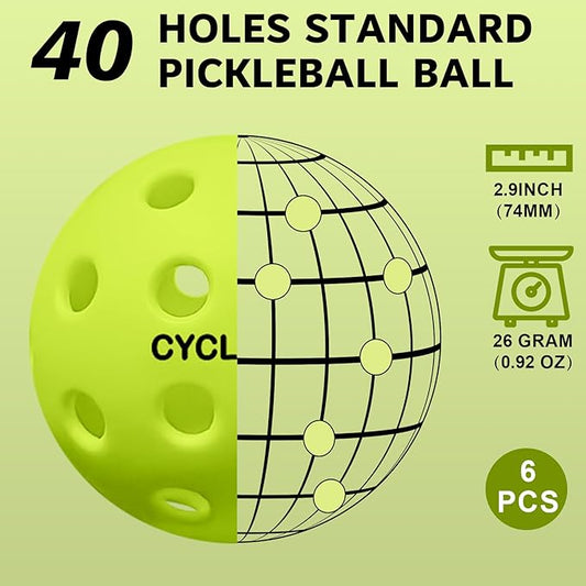 cyclotron 6-Pack Premium Pickleball Balls - USAP Approved, 40 Holes Outdoor/Indoor Pickle Balls with Bag, Perfectly Balanced, High Bounce True Flight, Pickle Ball for Tournament Play