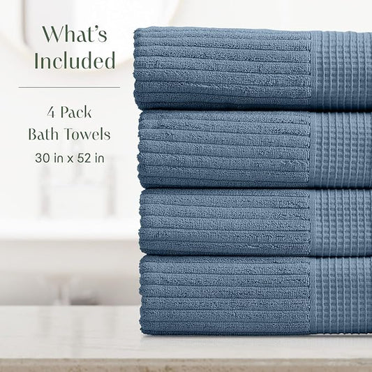 Springtree Home 100% Cotton Bath Towel Set of 4 | Super Soft & Absorbent with Quick-Dry Fibers | 4 Bath Towels | Textured and Durable Cotton | Krista Collection - Oceanview