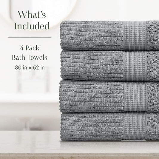 Springtree Home 100% Cotton Bath Towel Set of 4 | Super Soft & Absorbent with Quick-Dry Fibers | 4 Bath Towels | Textured and Durable Cotton | Krista Collection (Ultimate Grey)