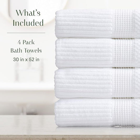 Springtree Home 100% Cotton Bath Towel Set of 4 | Super Soft & Absorbent with Quick-Dry Fibers | 4 Bath Towels | Textured and Durable Cotton | Krista Collection - Bright White