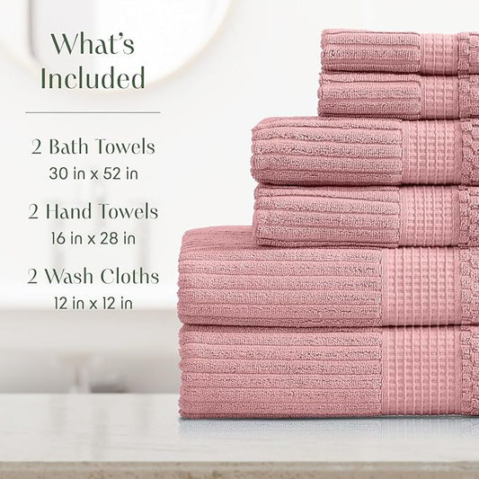 Springtree Home 100% Cotton Bath Towel Set | 6 Piece Set | Absorbent & Quick-Dry Bath Towels | Textured and Durable Cotton | Krista Collection - Bridal Rose