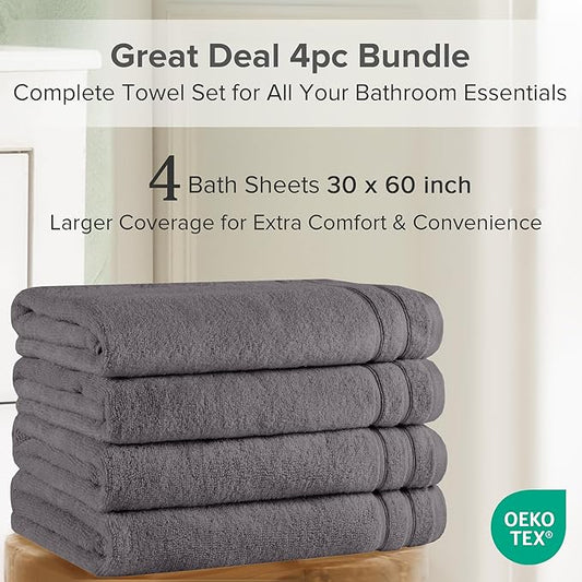 Comfort Spaces Extra Large Bath Towel Set of 4 Piece 30x60 Bath Sheet Set Shower Towel Beach Towel 100% Cotton Bathroom Towel Set Quick Dry Oversized Highly Absorbent Soft 400GSM Dark Grey Dual Layer
