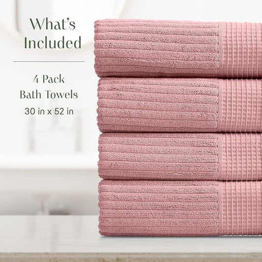 Springtree Home 100% Cotton Bath Towel Set of 4 | Super Soft & Absorbent with Quick-Dry Fibers | 4 Bath Towels | Textured and Durable Cotton | Krista Collection - Bridal Rose
