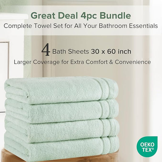 Comfort Spaces Extra Large Bath Towel Set of 4 Piece 30x60 Bath Sheet Set Shower Towel Beach Towel 100% Cotton Bathroom Towel Set Quick Dry Oversized Highly Absorbent Soft 400GSM Seafoam Green