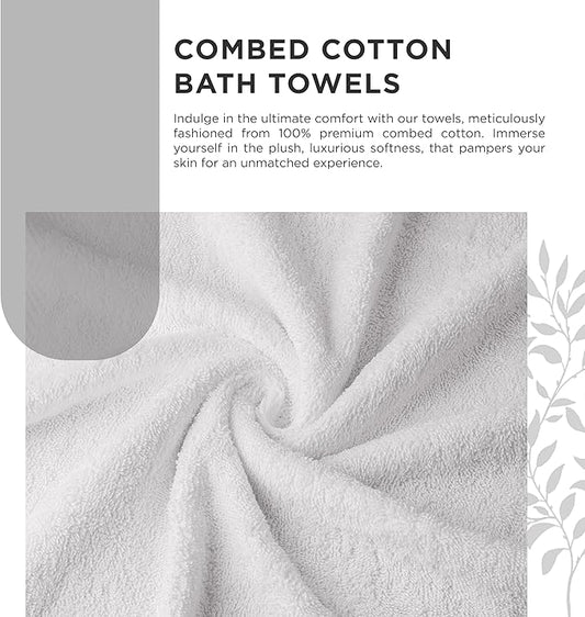 100% Combed Cotton Bathroom Towel Set of 3- 1 Bath Towel, 1 Hand Towel, 1 Wash Cloth, Sustainable, Soft, Highly Absorbent 3 Piece Cotton Bath Towel Set Ideal for Hotels, Spa, Bathroom, Dorm, White