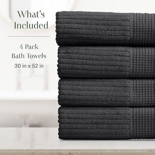 Springtree Home 100% Cotton Bath Towel Set of 4 | Super Soft & Absorbent with Quick-Dry Fibers | 4 Bath Towels | Textured and Durable Cotton | Krista Collection - Black Ink