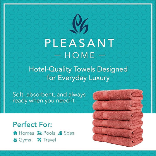 Pleasant Home Bath Towels Set of 6 (24” x 50”) 100% Cotton, 515 GSM | Lightweight, Soft & Absorbent Luxury Towels for Bathroom | for Gym, Pool & Spa | 6 Pack, Red