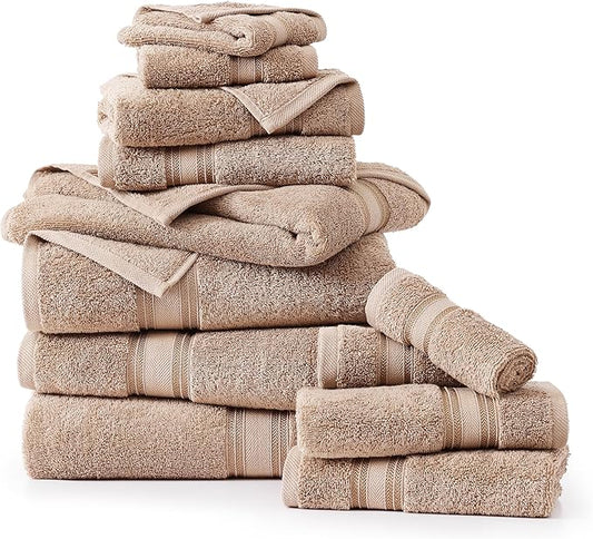 LANE LINEN Luxury Bath Towels Set - 12 Piece, 100% Cotton, Zero Twist, Super Soft & Extra Absorbent, Includes 4 Bath Towels, 4 Hand Towels, 4 Washcloths - Taupe