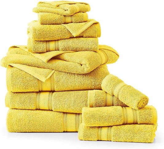 LANE LINEN Luxury Bath Towels Set - 12 Piece Set, 100% Cotton Bathroom Towels, Zero Twist Shower Towels, Extra Absorbent Bath Towel, Super Soft, 4 Bath Towels, 4 Hand Towels, 4 Wash Cloths - Mimosa