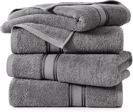 LANE LINEN 100% Cotton 4 Pack Bath Towels Set (28"x54") - Zero Twist, Large Cotton Towels for Bathroom - Quick Dry, Soft & Absorbent Bath Towel Set - Remains Soft After Multiple Washes - Cool Grey