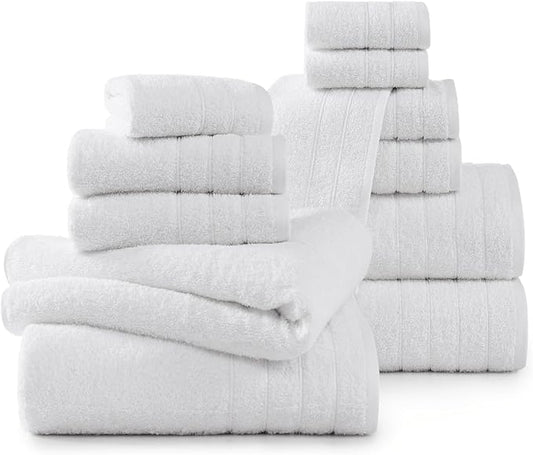 Casa Platino 100% Cotton Luxury Bathroom Towel Set - 12 Pcs - Super Soft, Fluffy & Highly Absorbent - 4 Large Bath Towels, 4 Washcloths, 4 Hand Towels - Complete Family Pack - White Bath Towel Set