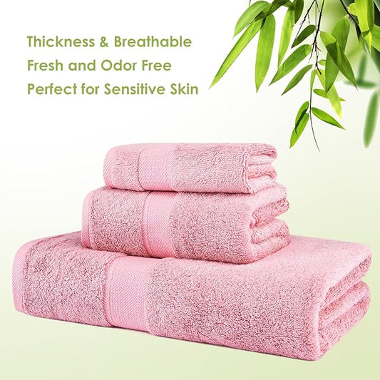 3PC Bathroom Towels Set for Face and Body, Sensitive Skin Pink Luxury Towels Set for Adult Students Kids Baby, Super Soft Highly Absorbent Towels Set for Bathroom 3 PC
