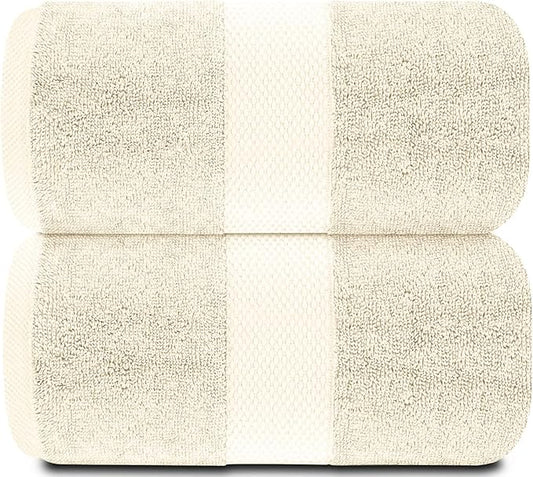 White Classic Luxury Soft Ivory Bath Sheet Towels - 650 GSM Cotton Luxury Bath Towels Extra Large 35x70 | Highly Absorbent and Quick Dry | Hotel Collection Extra Large Bath Towels Oversized, 2 Pack