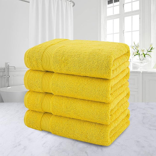 American Veteran Towel, 100% Cotton Turkish Bath Towels for Bathroom 4 Pack, 27x54 Extra Large Premium Soft Drying Bathroom Towels, Yellow
