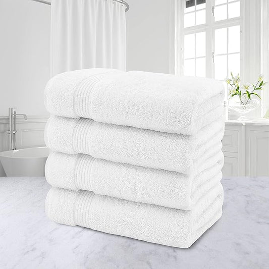 American Veteran Towel, 100% Cotton Turkish Bath Towels for Bathroom 4 Pack, 27x54 Extra Large Premium Soft Drying Bathroom Towels, White