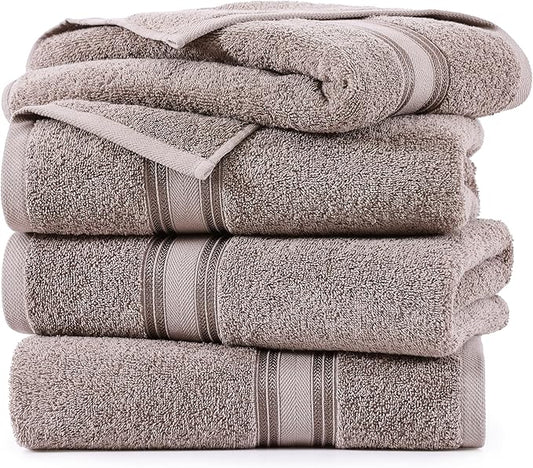 American Veteran Towel, 100% Cotton Turkish Bath Towels for Bathroom 4 Pack, 27x54 Extra Large Premium Soft Drying Bathroom Towels, Beige