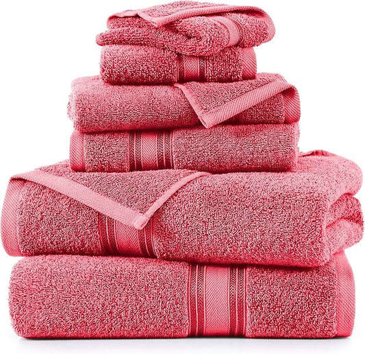 LANE LINEN Luxury 6-Piece Bath Towel Set - 100% Cotton, Quick-Dry, Super Absorbent, Zero Twist - Includes 2 Bath Towels, 2 Hand Towels, 2 Washcloths - Honeysuckle