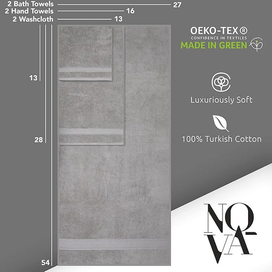 NOVA Luxury Linen - Hotel Quality Turkish Towel Set for Bathroom (6 Pcs Towel Set, Mirage Grey)