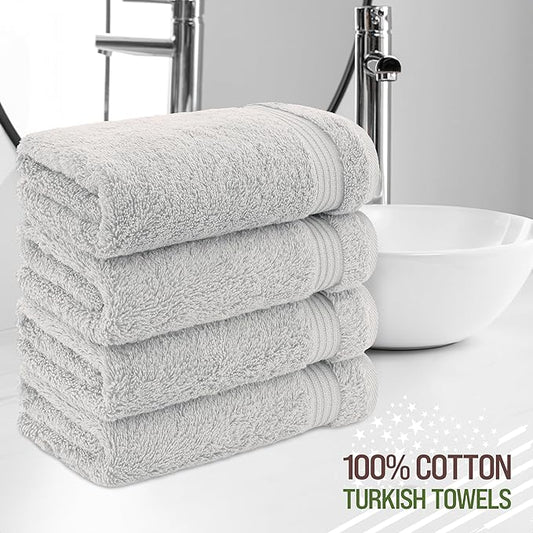 NOVA Luxury Linen - Hotel Quality Turkish Towel Set for Bathroom (4 Pcs Hand Towel Set, Mirage Grey)