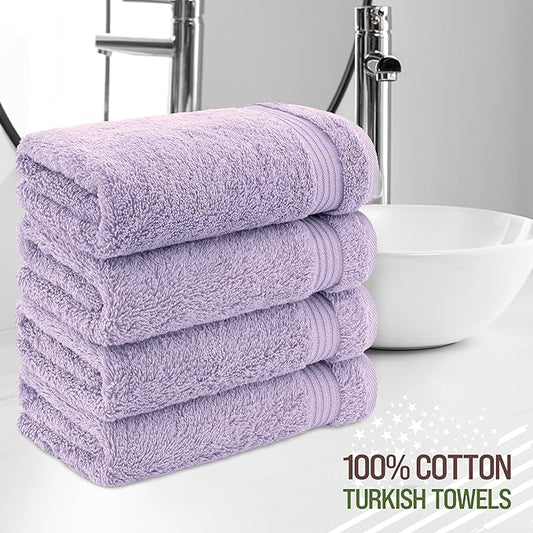 American Veteran Towel, Hand Towels for Bathroom Set of 4, 100% Cotton Turkish Hand Towel Sets, Soft Hand Face Towels, Lilac Hand Towels