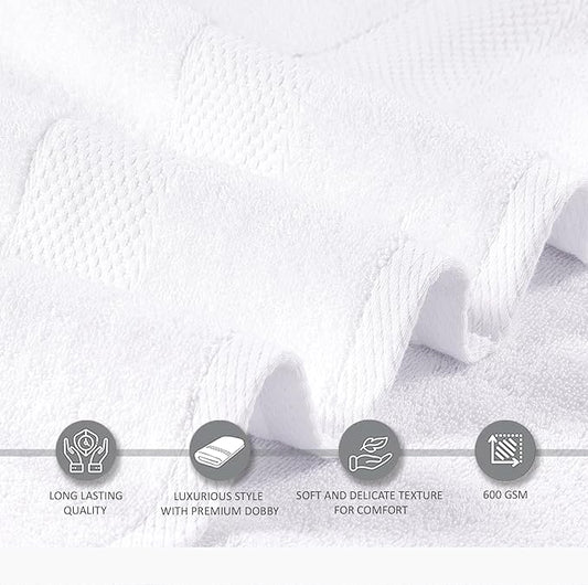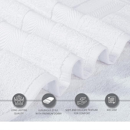 Oakias Premium Towel Set 600 GSM 8 Piece White - 100% Ring Spun Cotton Highly Absorbent Towels Set - Super Soft Bathroom Towel Set - Hotel Quality Double Stitched Hem - Ideal for Hotels, Spa, Gyms