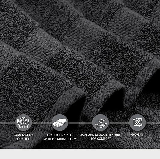 Oakias Premium Towel Set 600 GSM 8 Piece 100% Ring Spun Cotton Highly Absorbent Bath Towels Set - Super Soft Bathroom Towel Set - Hotel Quality Double Stitched Hem - Ideal for Hotels, Spa, Dark Grey
