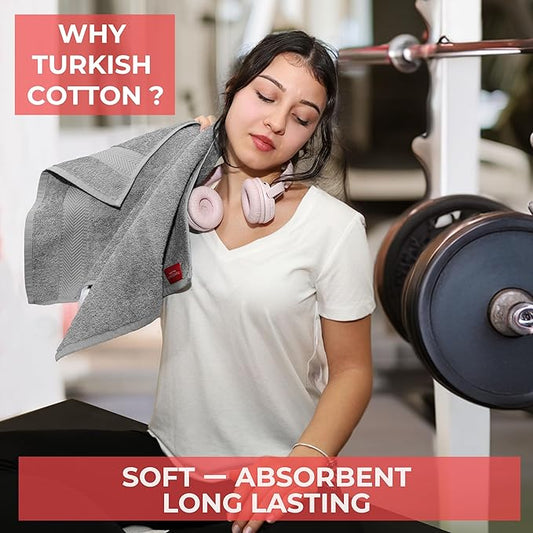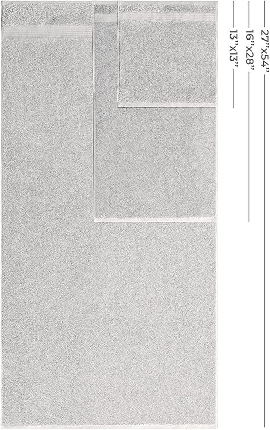 TEXTILOM 100% Turkish Cotton 6 Pcs Luxury Bath Towels, Soft & Absorbent Bathroom Towels Set (2 Bath Towel, 2 Hand Towel, 2 Washcloths)- Light Grey
